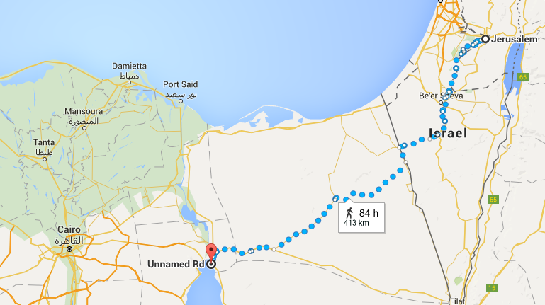 Além do Golfo de Aqaba não ser um rio, ele é pouca coisa mais próxima de Jerusalém que o ponto mais ao norte do Mar Vermelho em si, talvez 10 ou 20 km a menos. Ou seja, 2,5 a 5% mais próximo, mesmo que fosse razoável confundi-lo com um rio. Em nada reduz o problema do tempo de viagem.