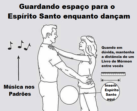 “Dançar pode ser divertido e pode dar-lhes a oportunidade de conhecer novas pessoas. Contudo, isso também pode ser usado indevidamente. Ao dançar, evitem o contato pleno com o corpo de seu par. Não fiquem em posições nem façam movimentos que sugiram comportamento sexual ou violento ou que sejam de qualquer forma impróprios.