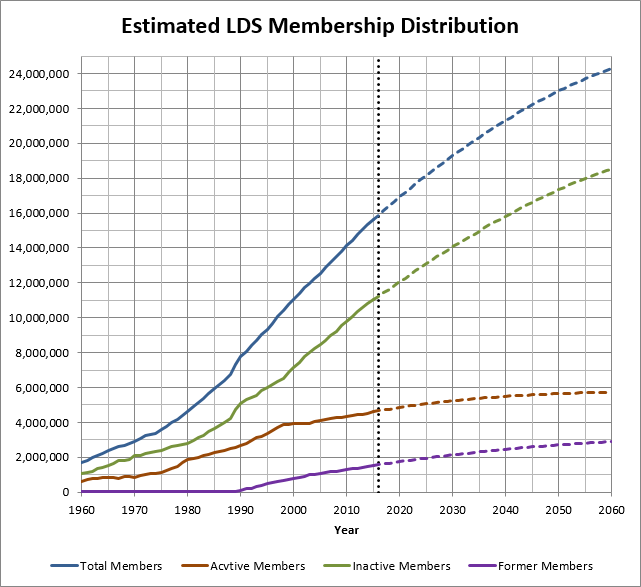 Além de ser notável a redução progressiva na taxa de crescimento total, nós sabemos por estudos populacionais independentes que a taxa real de membros (em atividade ou por auto-identificação) é bem, bem menor que as taxas oficiais computadas pela Igreja — que costuma contar como membros todas pessoas batizadas ou abençoadas quando crianças, até 120 anos de idade ou falecimento confirmado. O que torna o número total de membros uma ferramenta para rastreamento de crescimento menos confiável.