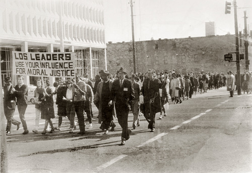 ‘Líderes SUD: usem sua influência em prol da justiça moral”, dizia a faixa carregada por estudantes e professores da Universidade de Utah, em 1965. Marchando ao lado de membros da NAACP, em Salt Lake City, eles pediam que a Igreja Mórmon usasse sua influência em favor do movimento de direitos civis. | Imagem: The Daily Utah Chronicle/KUED