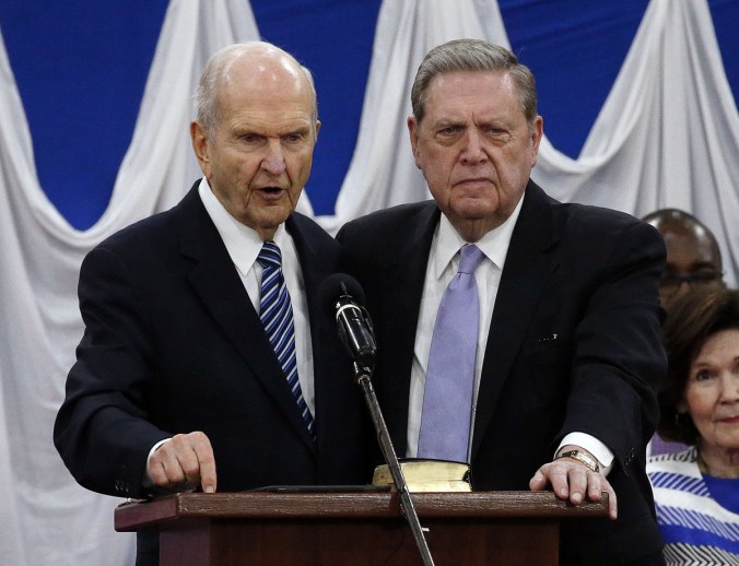 Presidente Russell Nelson, em visita com Apóstolo Jeffrey Holland, cobrou dízimo dos africanos no Quênia (Foto: Ravell Call, Deseret News)